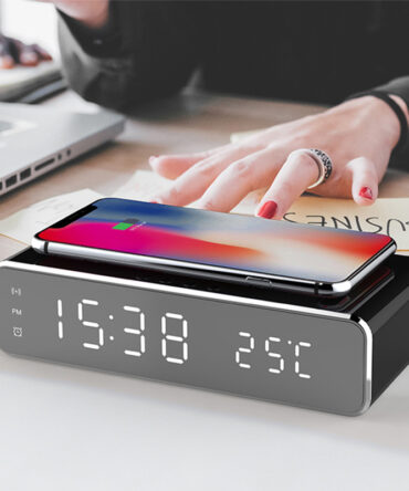 LED Electric Alarm Clock With Wireless Charger Desktop Digital Despertador Thermometer Clock HD Mirror Clock Watch Table Decor