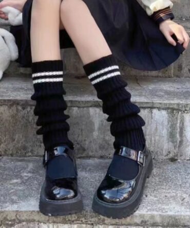 Womens Knitted Striped Black Over-the-Knee Socks