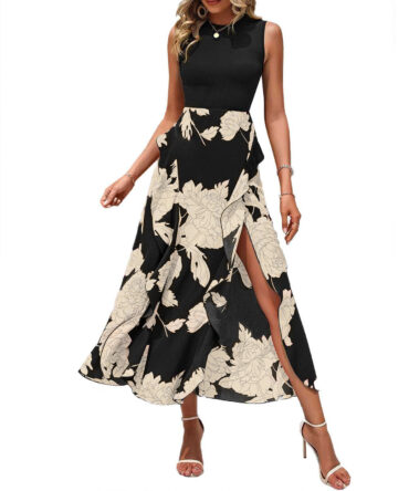 Floral Crew-neck Ruffled Sleeveless Dress