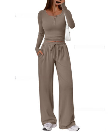 Comfortable Casual Long-sleeve Wide-leg Pants Set For Sports