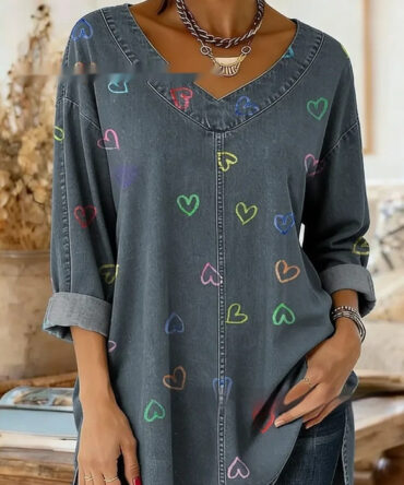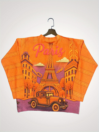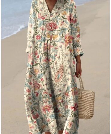 Retro Botanical Print Relaxed-fit Long-sleeve Casual Top