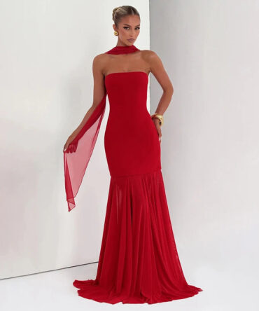 Red Strapless Hugging Mermaid Dress
